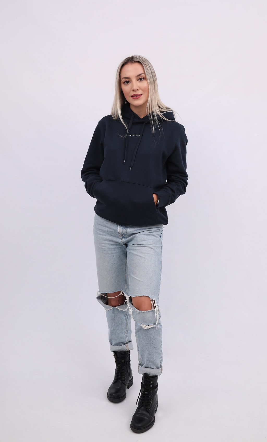 Sweatshirt 85% algodão orgânico, 15 % polyester reciclado.